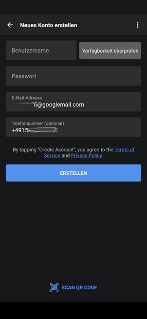 Beim ersten Start registrieren wir uns, das Übliche: Benutzername und Passwort. Bereits mit dem Benutzernamen bildet man eine Gruppe, der Name der Gruppe ist identisch mit dem Benutzernamen.