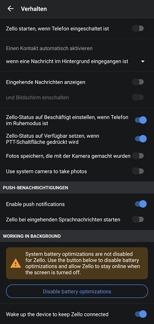 Beim Beenden des QSO muss der Automatikmodus explizit wieder deaktiviert werden, ein Abmelden und Beenden der App allein reicht nicht - Zello kann immer noch mithören!
