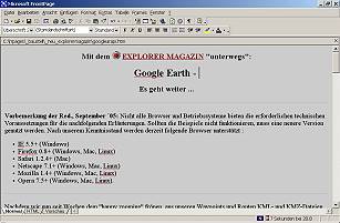 Als Google Earth auf den Markt kam, frönten wir auf unseren PCs wochenlang dem "happy zooming", erzeugten aus unseren Waypoints und Routen KML- und KMZ-Dateien, flogen unsere gefahrenen Touren nach (siehe dazu unseren "historischen" Beitrag Google Earth - Navigationshilfe oder Spielerei?) oder integrierten 3D-Objekte in die Karten. Wir befassten uns damit, was aus der "Heirat" von Google Earth und Google Maps herausgekommen war und wie man das Ergebnis in seine Seiten integrieren konnte. Denn durch die Integration der Satellitenbilder in Google Maps konnte man seine Seiten "aufpeppen", ohne dass der Betrachter zuvor Google Earth auf seinem PC installieren und man ihm KML- oder KMZ-Dateien zur Verfügung stellen musste.