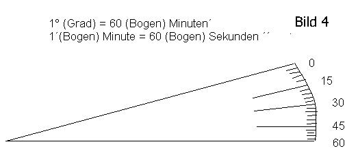 Man muss dafür, wie oben schon erwähnt, eigentlich nur wissen, dass 1° = 60´ (= "Bogen"-Minuten) sind und 1´= 60´´ ("Bogen"-Sekunden) (Bild 4).