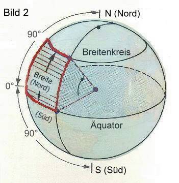 Unser Standort auf der Erdoberfläche und damit auch für das GPS wird mit Hilfe eines "gedachten" Gradnetzes (Koordinatennetz) bestimmt, das sich über die gesamte Erdkugel erstreckt - ein System aus Breitenkreisen und Längenkreisen (entsprechen Breitengraden und Längengraden, siehe Bild 1).