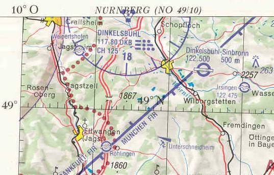 Im Beispiel unten ist ein Ausschnitt aus einer ICAO-Luftfahrtkarte mit dem Maßstab 1:500.000 zu sehen, die auch für Bodennavigation geeignet ist, wenn keine andere detaillierte Karte zur Verfügung steht.