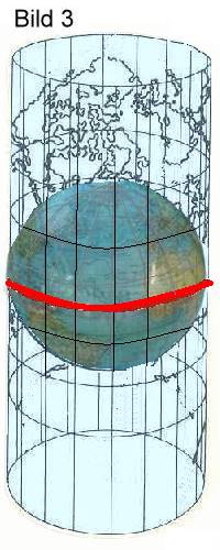 Wie dieser "Zylinder" dann auf die zweidimensionale Karte projiziert wird, zeigt Bild 4.