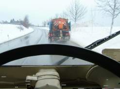 Winterreifen, ja klar, Fußbodenheizung war durch den halbwegs offenen Motorraum gegeben. Auf die globale Erderwärmung konnte jetzt nicht gewartet werden. Mir tränten die Augen durch das eng anliegende Zwiebelschalenprinzip: Zusätzlich Jacke, Mütze, Hose. Ungewöhnlich, lange Hosen, ich musste halt die Gratwanderung zwischen Markenbildung und Profilneurose in Richtung Gesunderhaltung gehen. Wird man mich erkennen ..?