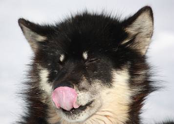 Der Leithund sträubt die Haare und lässt ein grollendes Gurgeln hören, als ich mich ihm nähere. Vorsichtig lege ich ihm meine Hand auf den Rücken. Gewaltige Muskeln arbeiten direkt unter seiner Haut. Als er die Pfote hebt, um sie mir in die Hand zu legen, wölbt sich der Bizeps nach außen, und als er sich spielerisch an meinen Beinen reibt, muss ich mein Gewicht fest in den Boden stemmen, um nicht zur Seite geschoben zu werden. Grönländische Schlittenhunde sind die Arnold Schwarzeneggers ihrer Art.