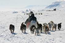 Stattdessen stammen sie direkt vom Wolf ab und können daher nicht bellen. Wenn sie raufen, schlagen sie einander die Zähne in die Flanke. Ohne zu zögern würden sie einen ausgewachsenen Bären angreifen. Bei minus fünfzig Grad legen sie sich in den Schnee und schlafen. Am nächsten Morgen ist ihr Fell mit einer Eisschicht überzogen. Sie stehen auf, schütteln die eisige Hülle ab und freuen sich aufs Weiterziehen. Eine Vermischung mit Artgenossen, die südlich des Polarkreises aufwachsen, zöge drakonische Strafen nach sich. An nordgrönländische Schlittenhunde darf nichts Weiches, nichts Zurückhaltendes, nichts Zweifelndes kommen.