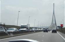 Der Stau auf der mehrere Kilometer langen Brücke ist bereits von
