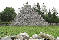 Als wir wieder einmal eine beeindruckende Kirchenruine am Wegesrand entdecken, halten wir dort selbstverständlich sofort an: Wir sind gerade mal rund 4 km entfernt von Cong und noch 5 km weg von Ballinrobe, durch das wir als nächstes auf unserem Weg nach Norden kommen werden. The Neale heißt das kleine Örtchen, wo wir jetzt sind und selbst hier auf dem Land findet man einige Attraktionen: Gerade erst sind wir an einem pyramidenähnlichen Steingebilde vorbei gefahren, bekannt als die "Pyramide von The Neale". Hierbei handelt es sich um ein als "folly" bezeichnetes Bauwerk, also um eine "Narretei" oder auch "Verrücktheit" ohne jeden wirklichen Zweck. Diese rund zehn Meter hohe Stufenpyramide wurde um 1760 errichtet und steht angeblich auf einem alten Grabhügel.