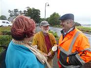 Roland fährt mit uns in seinem Mercedes mit Rechtslenker und irischem Kennzeichen zum Hafen von Westport: Sichtlicher Wohlstand herrscht hier, vom komplett sanierten Hafenviertel aus kann man hinüber schauen zum Golfclub des Ortes, bei dem Roland schon seit längerem Mitglied ist und wo wir sicher im Laufe unseres Aufenthaltes auch noch vorbeischauen werden. Roland hat seine Umsiedlung erst vor kurzem erfolgreich abgeschlossen: Mit inzwischen besten Kontakten zu Einheimischen und Besuchern lebt er nun hauptsächlich in diesem Ort, von dem aus er natürlich immer noch ab und zu für Besuche nach D aufbricht ...