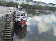 Mit unserem Bier können wir auf die andere Straßenseite wechseln und den Hafen betrachten, wo ein größeres Boot so befestigt ist, dass es bei sinkendem Wasserstand glatt einen Betonpfeiler mit seinen Seilen halb herausgerissen hat - harte und gnadenlose Gegend hier an der Westküste!