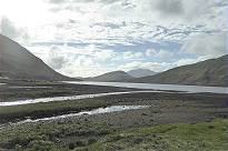 Diesmal soll es Richtung Süden gehen, natürlich auch wieder auf dem "Wild Atlantic Way", der uns zunächst ins Doolough Valley führt. Die Fahrt durch die unberührt wirkende idyllische Landschaft ist während dieses dunstig-trüben Tagesauftakts ein ganz besonderes Erlebnis. Wir passieren zwei Seen, die eingebettet zwischen verhangenen Bergrücken liegen - das Ambiente passt heute irgendwie fantastisch zur ganz und gar nicht hellen Vergangenheit dieser Region ...