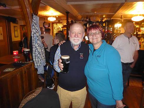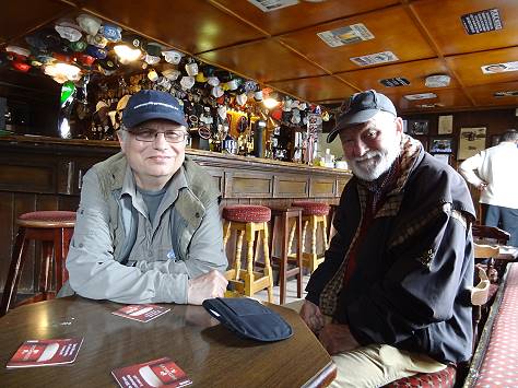 Wir öffnen Roland die Tür von innen und er kann wieder bei uns Platz nehmen - Anlass noch für viel Spaß und Frotzeleien über Burgeressen, Schließungszeiten irischer Pubs und Fragen, wie lange er wohl draußen noch auf uns gewartet hätte ...
