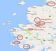 Wir nähern uns nun der ältesten irischen Benediktinerinnenabtei: Das im Jahr 1665 gegründete Kloster ist erst nach mehreren Umzügen in dem 1871 fertiggestellten Schloss Kylemore angesiedelt.