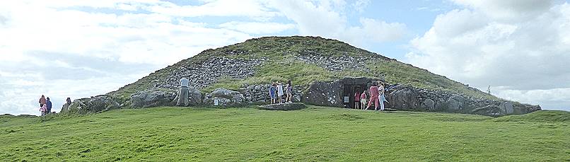 Anders als im ebenfalls aus der Jungsteinzeit stammenden englischen Stonehenge, das wir erst wenige Monate zuvor besucht haben, steht hier auch die Wintersonnenwende bei der Ausrichtung im Mittelpunkt. Die Grabkammern wurden von innen mit auffälligen, zumeist spiralförmigen Felsritzungen versehen. Die größte Kammer auf dem Gipfel mit der Bezeichnung "Cairn T" hat einen Durchmesser von 35 Metern.