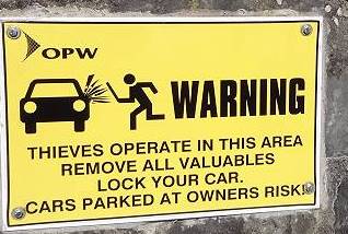 ein Schild erwartet, das den Besucher vor Dieben warnt, die hier