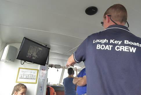Da die Busfahrpläne Richtung Boyle nicht allzu vielversprechend erscheinen, entschließen wir uns ganz spontan zu einer am Kai lautstark angepriesenen Rundfahrt auf dem See, veranstaltet von Lough Key Boats, die hier im Sommer regelmäßig Fahrten für 12 EUR pro Erwachsenem anbieten.