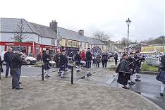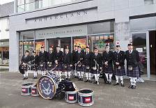 Wenn man so plaudernd im Pub sitzt, kann es dann plötzlich auch passieren, dass draußen eine schottische Kapelle aufmarschiert und sich den Bewohnern Westports präsentiert. Die Oldham Scottish Pipe Band ist natürlich so gut, dass man bei ihrem Vorbeimarsch vorübergehend das Lokal für ein Kurzvideo verlassen muss ...