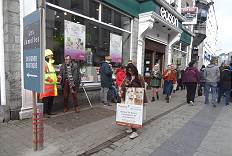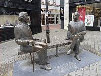 Wir kaufen Wollmützen und -Schals in einem Traditionsgeschäft, besuchen eine Heimstätte des Claddagh-Rings, spazieren entlang am Ufer des Hochwasser führenden Flusses Corrib, der vom gleichnamigen See aus durch die Stadt fließt und dort in den Atlantik mündet. Dabei kommt man auch zum "Spanish Arch", einer der beiden verbliebenen einstigen Befestigungen der Stadt zur Seeseite hin. Unweit befindet sich das historische Fischlokal McDonagh's, das seit 1902 zahlreiche Auszeichnungen für die exzellenten Meeresfrüchte- und Fischgerichte erhielt ...