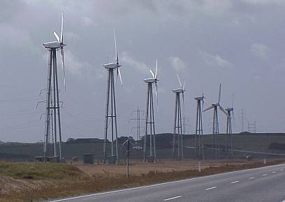 Die Windenergie in Dänemark: Sicher ein Thema, das sich gesondert zu betrachten lohnte, meint man zu ahnen, wenn man einen Windpark nach dem anderen passiert mit zum Teil unterschiedlichsten Konstruktionen. Im Gegensatz zu deutschen Verhältnissen, wo Kosten und Nutzen der Windenergie höchst umstritten sind, müsste die Sachlage hier eigentlich eindeutig sein - der starke Dauerwind während unserer Fahrt entlang der Westküste scheint eine deutliche Sprache zu sprechen.
