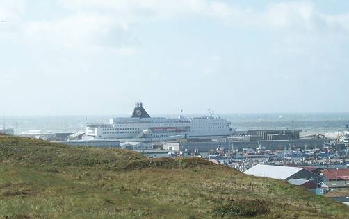 hatten wir sie schon liegen sehen: Die Norröna. Ungerührt von