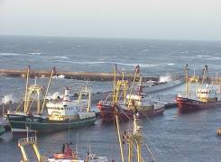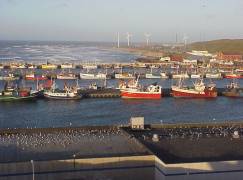 geschützte Hafenbereich von Hanstholm hinter uns kleiner und