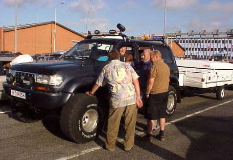Unübersehbar mit seinem höher gelegten 38-Zoll-bereiften Toyota und dem unverkennbaren Klappwohnwagen dahinter, den wir in den Folgewochen auf der Insel noch häufiger sehen werden.