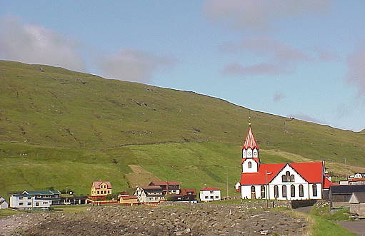 Und in der Tat Erfreuliches erwartet uns hier "im Süden": Das hervorragende Wetter mit sonnig-blauem Himmel ist schließlich nicht zu übersehen, als wir uns Sandavágur nähern - jubiliert da etwa der "verkappte Saharafahrer" in einem ..? Und der fährt heute wirklich gern nach Vágar, der Insel, die ihren Namen nach den Buchten der drei Hauptorte Sandavágur, Miðvágur und S¢rvágur erhielt. Sandavágur selbst hat eine lange Geschichte: Eine in der Kirche ausgestellte Runentafel aus dem 13. Jahrhundert belegt, dass sich hier einst Wikinger ansiedelten. Und auch der "Vater" der faringischen Schrift wurde in diesem Ort im Jahr 1816 geboren.