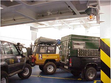 Auch die Gruppe von OFF-ROAD-Adventure Tours hat sich wieder eingefunden: Die Bordregie führt uns in der selben Kurve auf dem Fahrzeugdeck zusammen, bevor wir uns wieder dem Bordleben widmen können ...