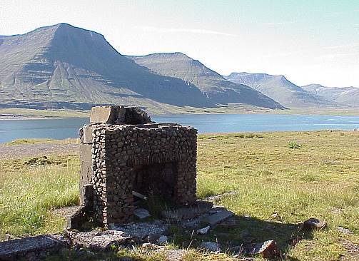 Die Unterkunft wurde von Isländern gebaut, die für die Alliierten arbeiteten, für die Offiziere, die in dieser Baracke untergebracht waren. Man sieht noch die Reste des Fundaments, das aus Gasolin-Behältern hergestellt wurde, die mit Beton gefüllt waren und aus denen die Armierungseisen herausgeführt wurden.
