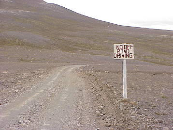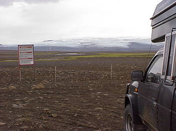 Wir fahren vorbei an einem Abzweig, der nördlich vom Hofsjökull vorbei führt und als gefährlich gekennzeichnet ist - auf keinen Fall sollte man ihn allein befahren, sagt die Warntafel. Dass diese Tafel nur wenige Tage zuvor deutsche Touristen nicht daran gehindert hatte, ihren Landy auf dieser Strecke zu versenken, gehört zu den üblichen Vorfällen in Island - mehr dazu in unserem Schwerpunkt "Driving on Icelandic Roads" ...