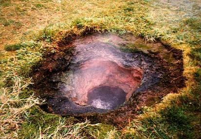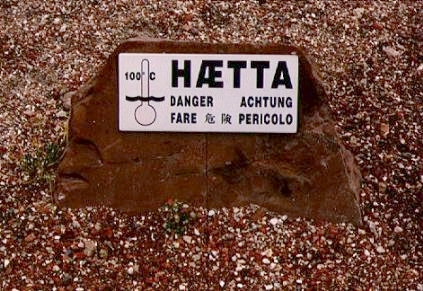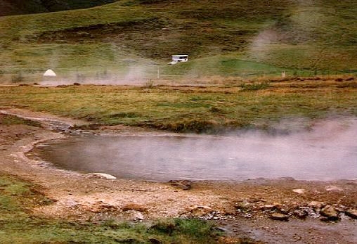 Auch der Geysir und seine hochthermale Umgebung mit vielen "Brodeltöpfen", "Dreckspritzern" und dem "Butterfass" Strokkur, dem mächtigen, regelmäßigen Heißwasserspritzer, statten wir wieder unseren Besuch ab. Diese Nacht wollen wir sogar auf dem Geyir Camping am Rande des Thermalgebiets zubringen und erhalten dafür auch das OK des mehr schlechten als rechten Personals in dem für die Vergabe der Plätze zuständigen Shop an der Tankstelle gegenüber vom Geysir.