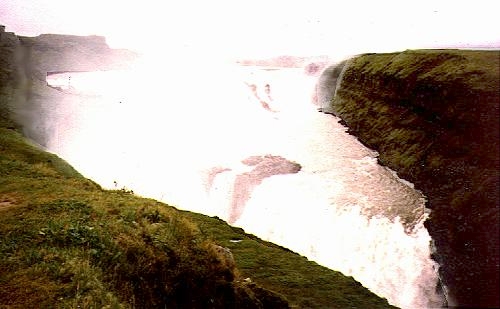 Vom Gatter aus ist es nur noch eine kurze Strecke zum Gullfoss, einem der größten und imposantesten Wasserfälle Islands, den wir uns nun auch schon zum zweiten Mal anschauen und den wir Silvester 1996 ebenfalls wieder aufsuchen werden - dann ein traumhafter Anblick in neblig verhangener, vereister Atmosphäre und mit Ausnahme von uns ohne jeden Touristen!