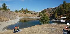 Der Einstieg über Bardonecchia ist schnell gefunden und wir gewinnen rasch an Höhe. Noch vor dem Stausee Rochemolles beginnt die Schotterpiste, die anfangs sehr staubig ist ...