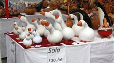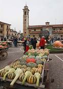 Jetzt geht es aber weiter nach Piozzo: In dem kleinen Ort auf einem Hügel im Tal des Tanaro (tolle Kreidehänge!) ist einmal im Jahr die "Fiera della Zucca", das Kürbisfest. Bereits am Fuß des Hügels müssen wir unser Auto auf einem großen Parkplatz stehen lassen und zu Fuß den Weg nach oben antreten. Die Besucher, die uns entgegenkommen, schleppen derweil kiloweise Kürbisse, meterlangen Lauch und andere Spezialitäten zum Parkplatz. Das Kürbisfest ist wirklich sehenswert und wir schaffen es nicht, alles anzuschauen.