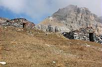 Am nächsten Tag ist der Himmel wieder mit einer zähen Hochnebeldecke überzogen: Mir geht das langsam auf die Nerven und ich schlage vor, Richtung Westen ins Sturatal zu fahren, um eventuell der Sonne entgegen zu kommen. Von Demonte aufwärts in Richtung Maira-Stura-Kammstraße kommen wir immer mehr in die Wolken und das Thermometer fällt auf 7°C. Wir sehen rein gar nichts vom Himmel und brauchen sogar ab und an den Scheibenwischer. Kurz vor dem Colle Valcavera kommen dann doch noch die ersten Sonnenstrahlen durch und verbreiten eine tolle Stimmung in diesem Hochtal.