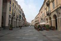 Es kommt regelrecht Großstadtflair auf und wir fühlen uns, als wären wir in in Klein-Turin gelandet. Heute am Montag haben alle Museen geschlossen und auch sonst ist herzlich wenig los. Eine Bar und Pasticceria an der anderen konkurriert mit bekannten Läden der allgegenwärtigen Ketten. Die Via Roma ist die Hauptachse der Altstadt und eine Fußgängerzone. Hier reiht sich ein renovierter Palazzo an den anderen und wieder sind auf beiden Seiten lange Laubengänge angelegt. Allerdings in deutlich niedrigerer Art als am Hauptplatz in der Neustadt. Nach fast zwei Stunden haben wir genug und fahren wieder zurück zum Camping, um das Abendessen zu kochen. Gleich duftet es nach gebratenem Kaninchen und das Gemüse wartet fein geschnitten auf dem Tisch, um in ein schmackhaftes Curry verwandelt zu werden. Morgen soll es endlich sonniger werden und wir wollen dann die Gegend um Alba und Barolo erkunden ...