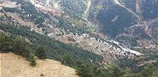 Den im Denzel beschriebenen tollen Blick über den Ort finden wir ebenso wie den ersten Gegenverkehr auf dem sehr schmalen Militärsträßchen. Dann wird es abenteuerlich! Ohne jegliche Randsicherung geht es auf der nur teilweise asphaltierten "Straße" bergauf. Wir müssen in fast jeder Kehre reversieren und immer wieder Gegenverkehr auf abenteuerlichen Ausweichen passieren lassen. Die Straße ist teilweise so schmal, dass ich notgedrungen mit dem talseitigen Reifen auf der Randbefestigung fahren muss.