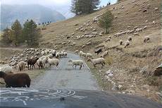 An der Baisse de Peyrafique gehen drei Straßen ab: Wir sind etwas verwirrt und sehen viele Schafe auf der Straße in Richtung Casterino. Die Schäfer geben uns freundlich Auskunft und schicken uns die rechte Straße ins Vallon de Casterino. Dort wird der Belag schnell ruppiger und die Fahrbahn enger. Vor einem abenteuerlichen Tunnel kommt uns dann auch noch ein Kieslaster des Straßenbaukommandos entgegen.