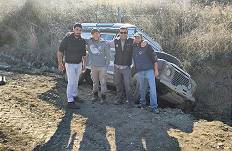 um Hilfe vorzugaukeln! Der Land Rover steckte aber so im Matsch,
