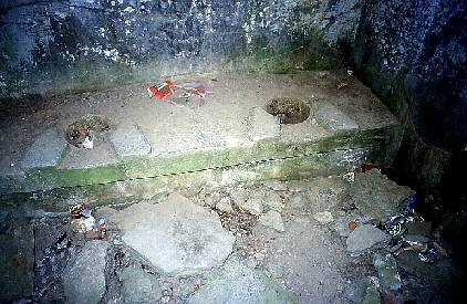 hier bestand aus einer durchgehenden Steinplatte mit zwei runden Ausschnitten.