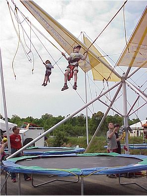 Auf einer Trampolinanlage können die lieben Kleinen hoch hinaus hüpfen und wir beobachten den einen und anderen, der unter Juchzen sogleich Vorwärts- und Rückwärtssalti dreht.