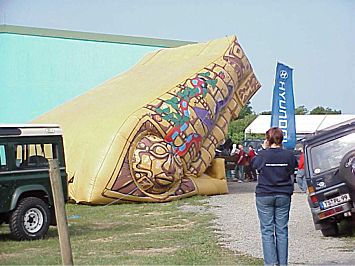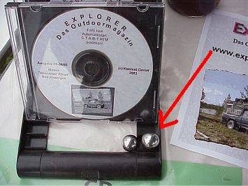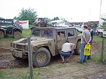 Vorwärts: Geht nicht. Rückwärts: Geht auch nicht. Der Fahrer kuppelt und schaltet, die Fahrgäste gucken verwirrt. Schnell merken die Beobachter, da ist was faul! Ein Mitarbeiter vom Rover-Stand bietet sofort Abschlepphilfe an. "Fachkundige" Besucher schauen schon mal unter den Hummer. Die nachrückenden Geländewagen stehen im Stau. Doch plötzlich purzeln unter dem Hummer kleine silberne Kugeln heraus: Erst eine, dann zwei, dann immer mehr - so eine Handvoll werden im Matsch verteilt.