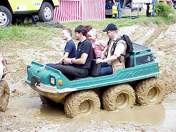 Bei den Kleinen ganz hoch im Kurs: Die 6x6 und 8x8 Amphibienfahrzeuge. Mit etwas Wasser hat man schöne Schlammlöcher vorbereitet, da sollte man seine Sonntagsklamotten besser zu Hause gelassen haben.