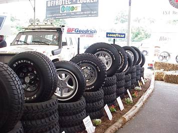 Da gibt es für Reifenfreaks ein El Dorado: Reifen türmen sich mit Beschriftungen wie 80:20 Gelände, 100 Gelände, 50:50 Gelände usw. Wem nicht ganz klar ist, was das bedeutet, kann zum Beispiel bei Mayerosch erfahren, dass die Angaben wie 80:20 sich auf die "Grobheit" des Profils beziehen und je höher der Geländeanteil ist, um so holpriger und ungünstiger soll sich der Reifen auf der Straße fahren. Man kann am Stand auch bestens über Gummimischungen, Reifenaufbau, Maße, Load Index und vieles mehr fachsimpeln und der große Vorteil: Hier man kann auch exotische Reifen sehen, riechen, fühlen ...