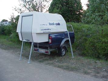 Wer seinen "Palast" gerne in luftigen Höhen aufbaut, kann alle möglichen Dachzelte inspizieren. Wer sich jedoch lieber in weniger Stoff hüllt, der kann sich bei Josef Bürk in die Vorteile des von ihm entwickelten microbils einweisen lassen. Es handelt sich hierbei um eine absetzbare Hardtopkabine, die nach individuellen Wünschen zu einem Campingmobil ausgebaut werden kann. Wem also eine Wohnkabine zu groß, zu teuer oder zu schwer ist und wem gleichzeitig ein Hardtop nicht genügt, der sollte sich das microbil mal näher anschauen.
