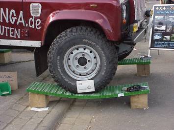 Und wer sich Sorgen macht, dass er sich festfahren könnte, der findet sogleich Hightech-Problemlösungen. So z.B. Sandbleche aus GfK oder eigentlich viel zutreffender: Sand-GfKs. Aus 8,8 kg GfK pro grünem "Blech" bekommt man eine tragfähige Konstruktion, die jedoch recht dick ist. Muss man keine "Brücken" bauen, so zeigt uns Kay Kratochwil von Sandbleche.de mit seiner Entwicklung, wie man mit 2,8 kg pro "Blech" eine belastbare Anfahrhilfe bekommt, die mit ihren wenigen Millimetern Dicke Platz in jedem Wagen findet, auch wenn er noch so voll gerümpelt ist. Auch schwächliche BeifahrerInnen haben nun keine Ausrede mehr: Bei dem Gewicht kann jeder zupacken.