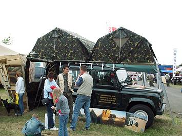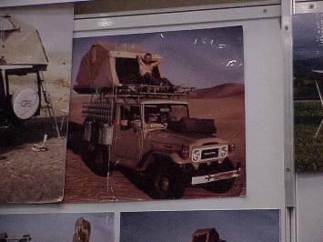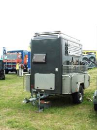 Bei unseren Rundgängen finden wir - wie schon zuvor auf der CBR 2004 (siehe Bild unten links) - rein zufällig Spuren von Martin Ettenbauer alias Hauptmann Klaus (wie wir vermuten), der uns durch seine Forumsaktivitäten recht bekannt geworden ist. Mit seinem unverkennbaren Hänger "Liesl" (weiß die Ehefrau eigentlich mittlerweile davon??), Dachzelt und Expeditionsmobil lässt er wohl keine Messe aus. Auch wenn er seinen Hänger nun teilweise grün umgespritzt hat: Er ist enttarnt!
