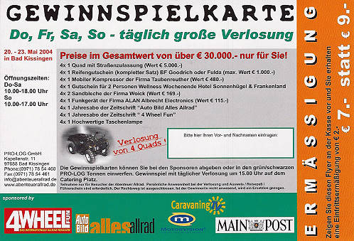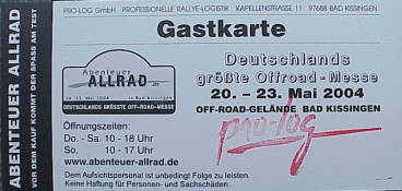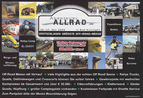 Nach unserer Teilnahme an der Messe in Bad Kissingen in den Jahren 1999, 2002 und 2003 waren wir auch diesmal wieder dabei: Bei der 6. Erlebnismesse in Bad Kissingen, der "Abenteuer Allrad"!