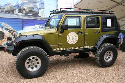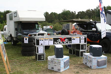 Auch mit den Nachbarn auf der anderen Standseite, 4x4 MAXE aus Rohrdorf, läuft es bestens: Naturgemäß ergeben sich etliche Gespräche mit den Spezialisten für Geländewagentechnik und Ausrüstung, die u.a. ein Komplettprogramm für Geländewagen, Umbauten und entsprechende Reisen bieten.