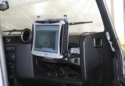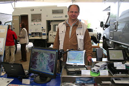 Und mit diesen Themen wiederum ist Wolfgang ebenfalls in einem Bereich tätig, der uns sehr interessiert: Nur mit Mühe konnten wir uns losreißen von seinen "Heavy Duty" Tablet-PCs und PDAs, auch die Einbauten im firmeneigenen Defender, der Vorbild für das "große" 110er Download-Modell war, überzeugen und machen ganz "gierig" auf ähnliches Equipment im eigenen Expeditionsfahrzeug.